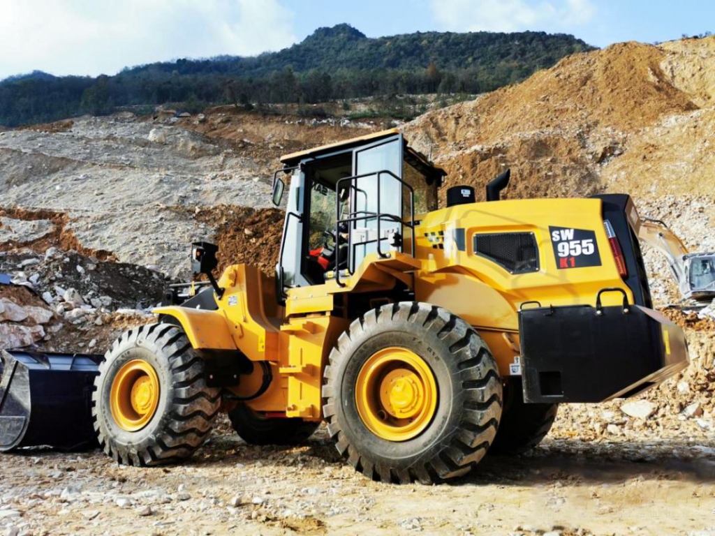 The SW955K is a 5.5-ton class wheel loader engineered for high productivity in demanding applications. Meeting China Stage IV emission standards, it combines a powerful engine with a heavy-duty 6-ton planetary transmission and intelligent control systems, delivering exceptional performance, fuel efficiency, and reliability in mining, quarry, construction, and material handling operations.